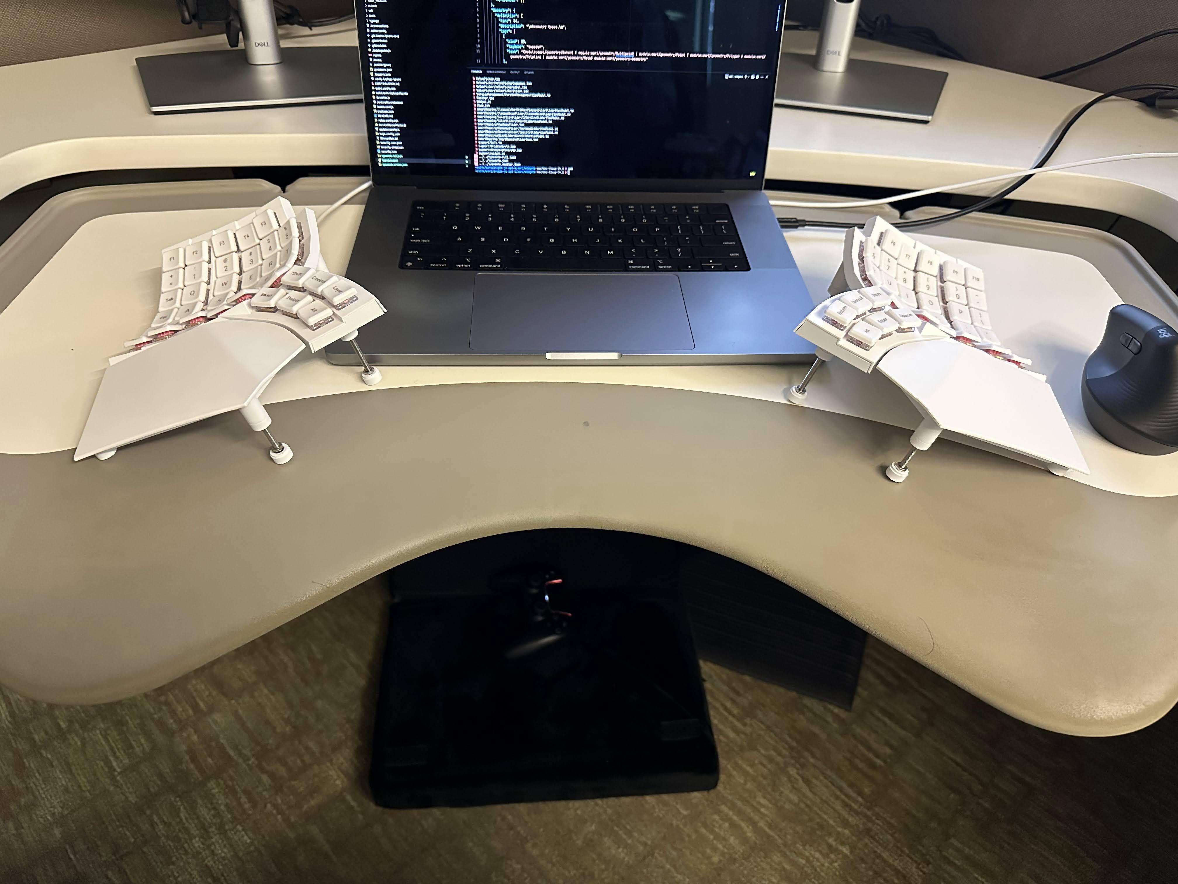I used the above for two weeks, without touching a mouse or keyboard once (turns out the keyboard gets dusty quickly when not in use). While this was a great life-saver, I cannot imagine doing this for years, so I began doing a lot of research into ergonomic keyboards. I never owned a mechanical or ergonomic keyboard before, and certainly never any that was worth over $50.