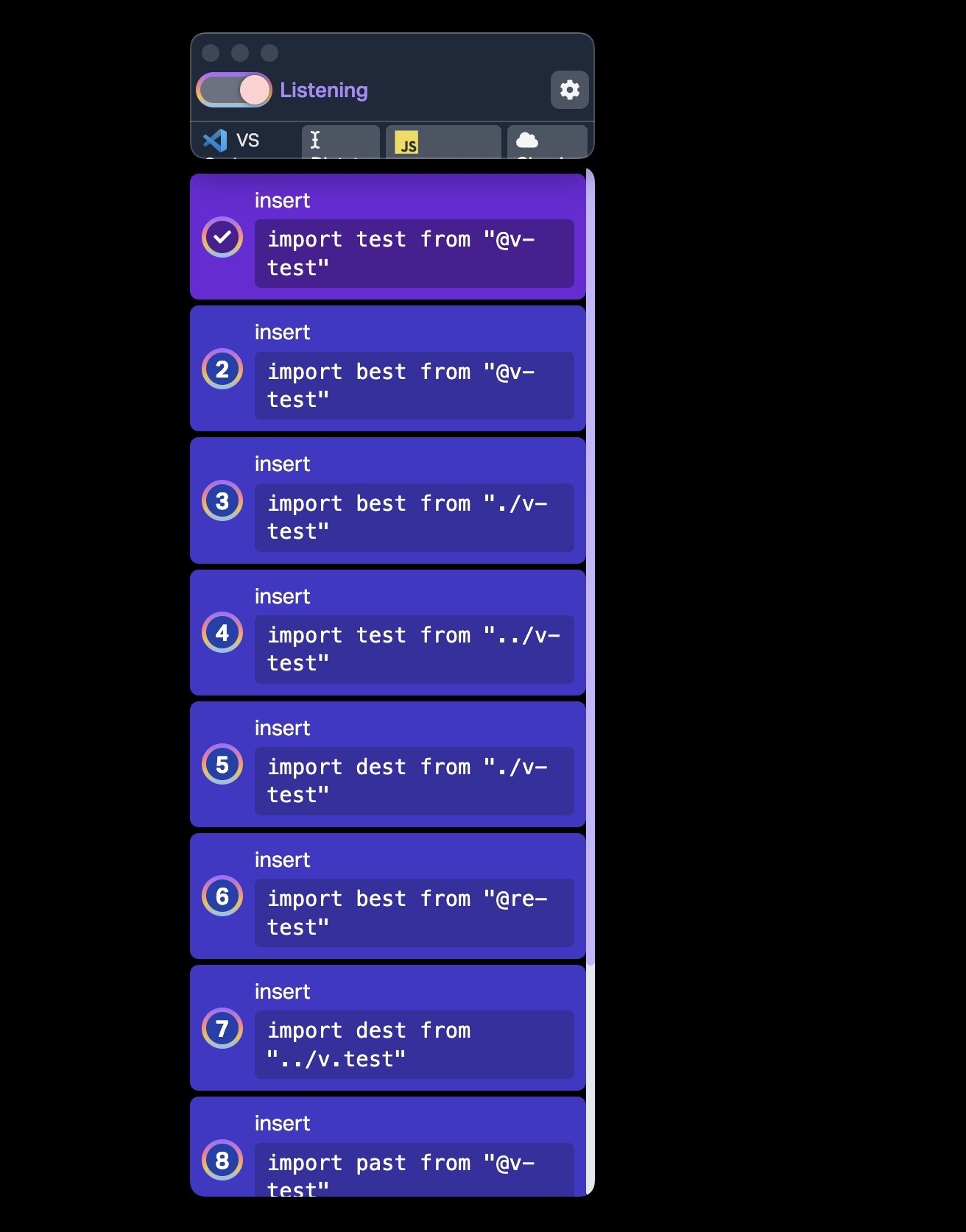 The AI model has been trained on most common programming languages - it scans the surrounding text, and auto-inserts the syntax noise for you (you can say "insert import test from vitest" and it will write