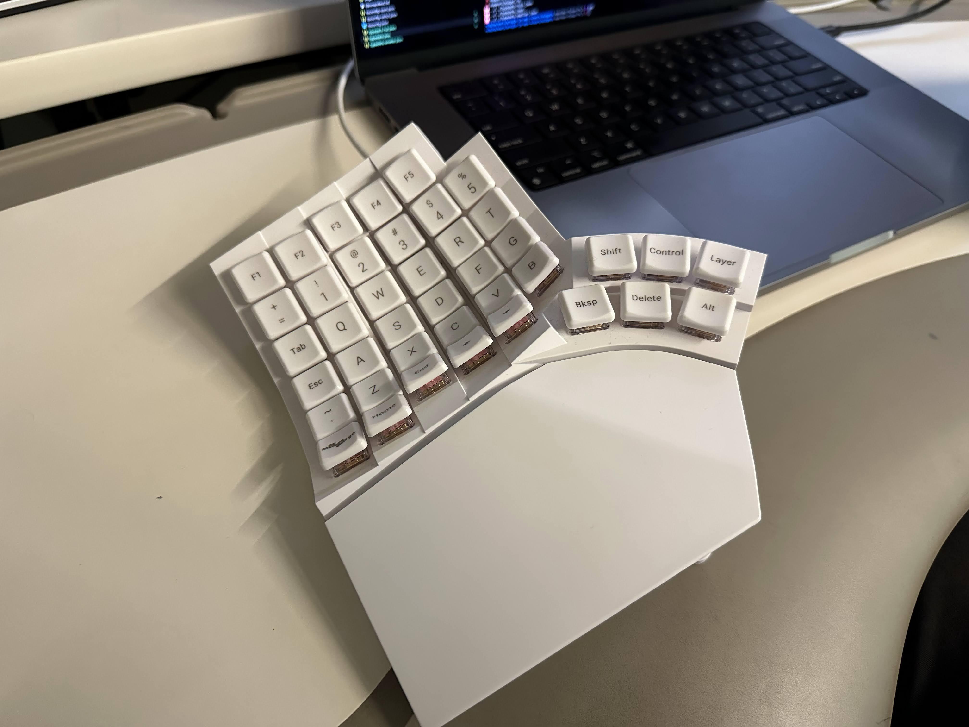 Having not typed for two weeks, my finger pain was pretty much gone. So when the keyboard arrived, I was excited to geek out hard on it (setup layers, macros, tap-dance features, home row mods, etc...). The only thing I did not do is custom layout as I do not believe it to be a sufficient benefit in my case, and not worth the inconvenience when searching for scattered keyboard shortcuts or presenting on a shared computer.