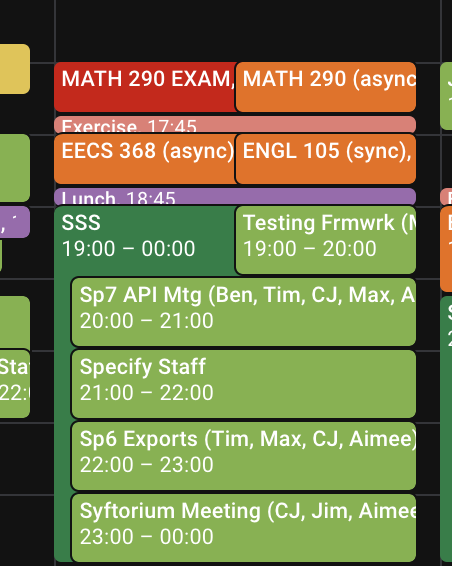 An example of a day that would not have been possible without a calendar: an exam, a class, and then 5 work meetings almost back to back: