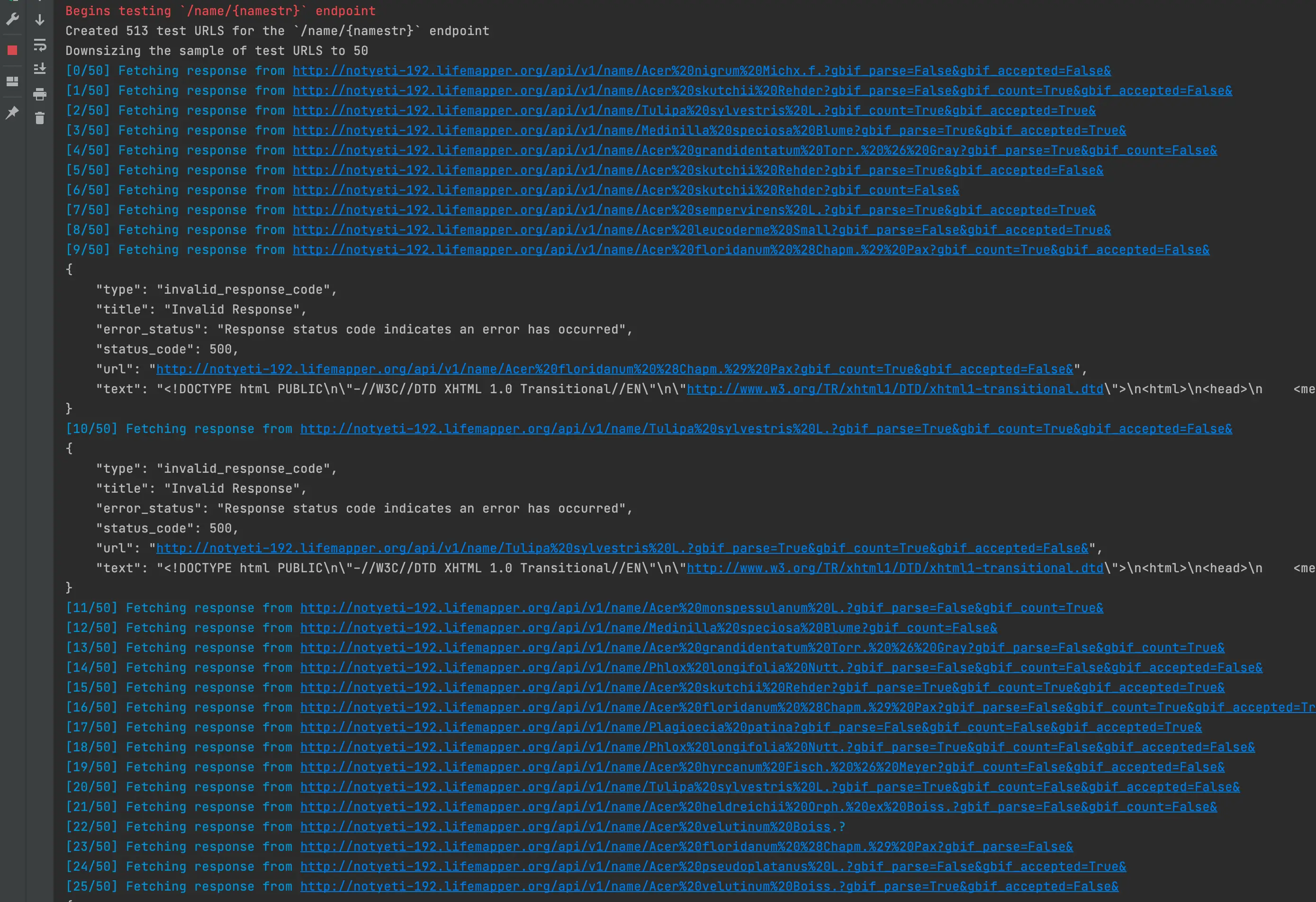 The OpenAPI testing framework I developed can run automated tests on all endpoints by randomly creating a valid query string and comparing the response object against the schema.