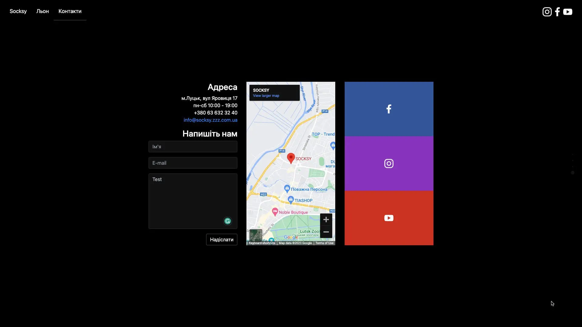 The website is now offline as it was replaced by a Facebook page. Previously, it was live at socksy.in.ua